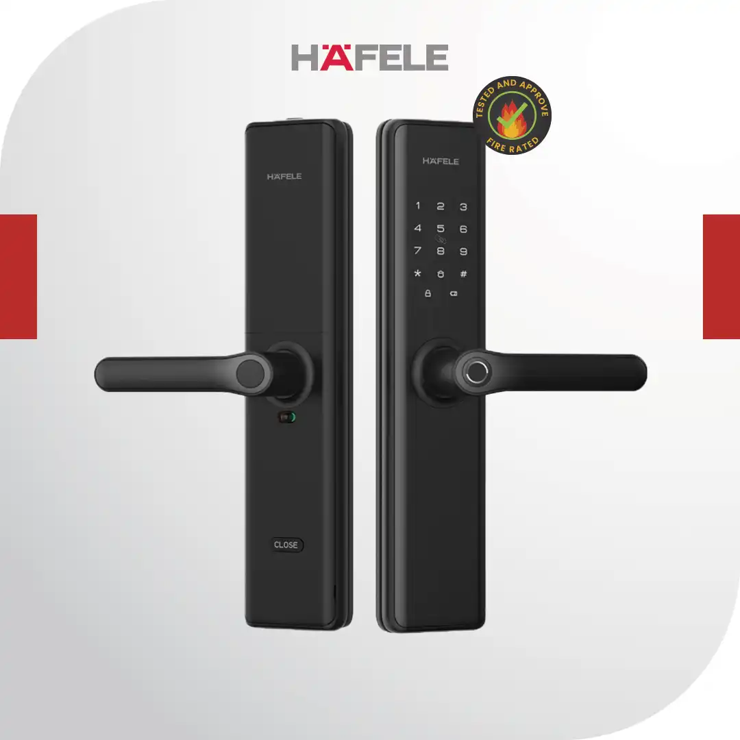 - Hafele DL7600 Lever Handle Fire Rated Digital Door Lock is designed to offer a balance of smart access and reliable performance for modern homes