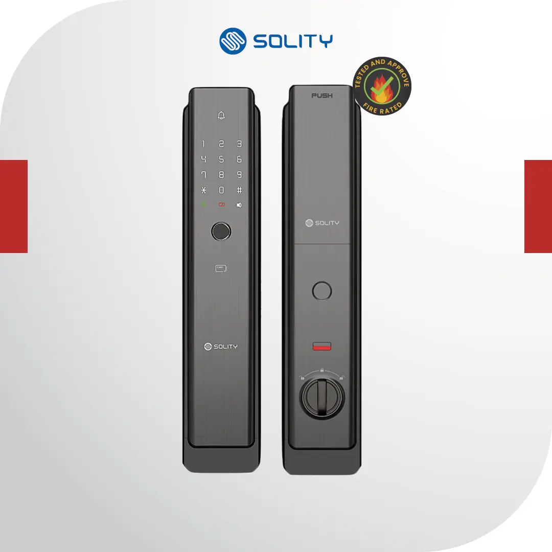 The Solity GEA-1000BK Fire Rated Door Lock is a premium smart lock designed to deliver both advanced security and fire safety for modern homes. Built specifically for main doors, this lock is fire-rated for up to 60 minutes, ensuring reliable performance even under extreme heat conditions while giving occupants valuable time to evacuate safely.