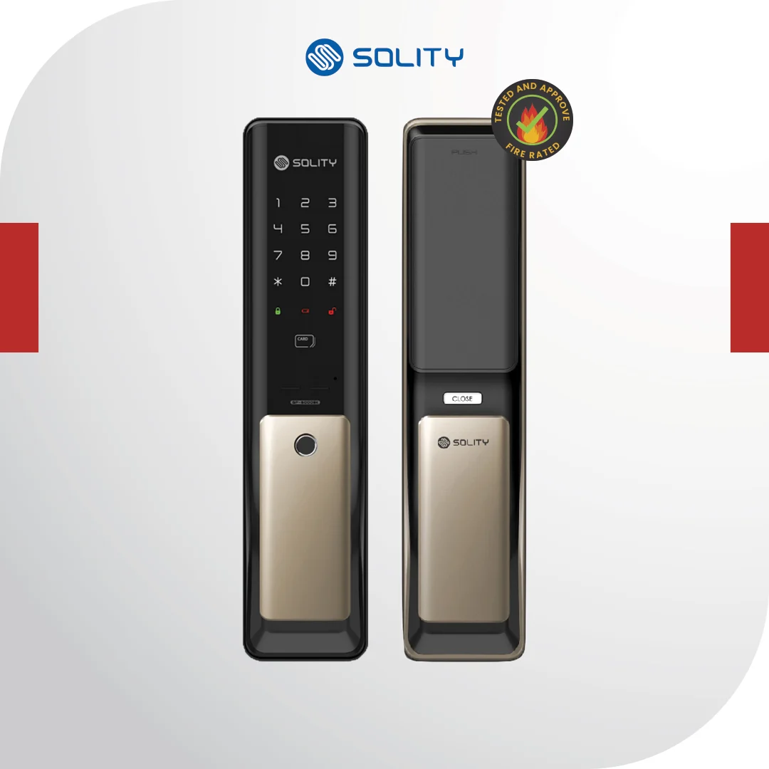 Powered by standard AA batteries with backup key access, the Solity GP-6000BK ensures uninterrupted operation. Combining modern design, advanced technology, and fire safety features, it is an ideal choice for secure and smart home living.